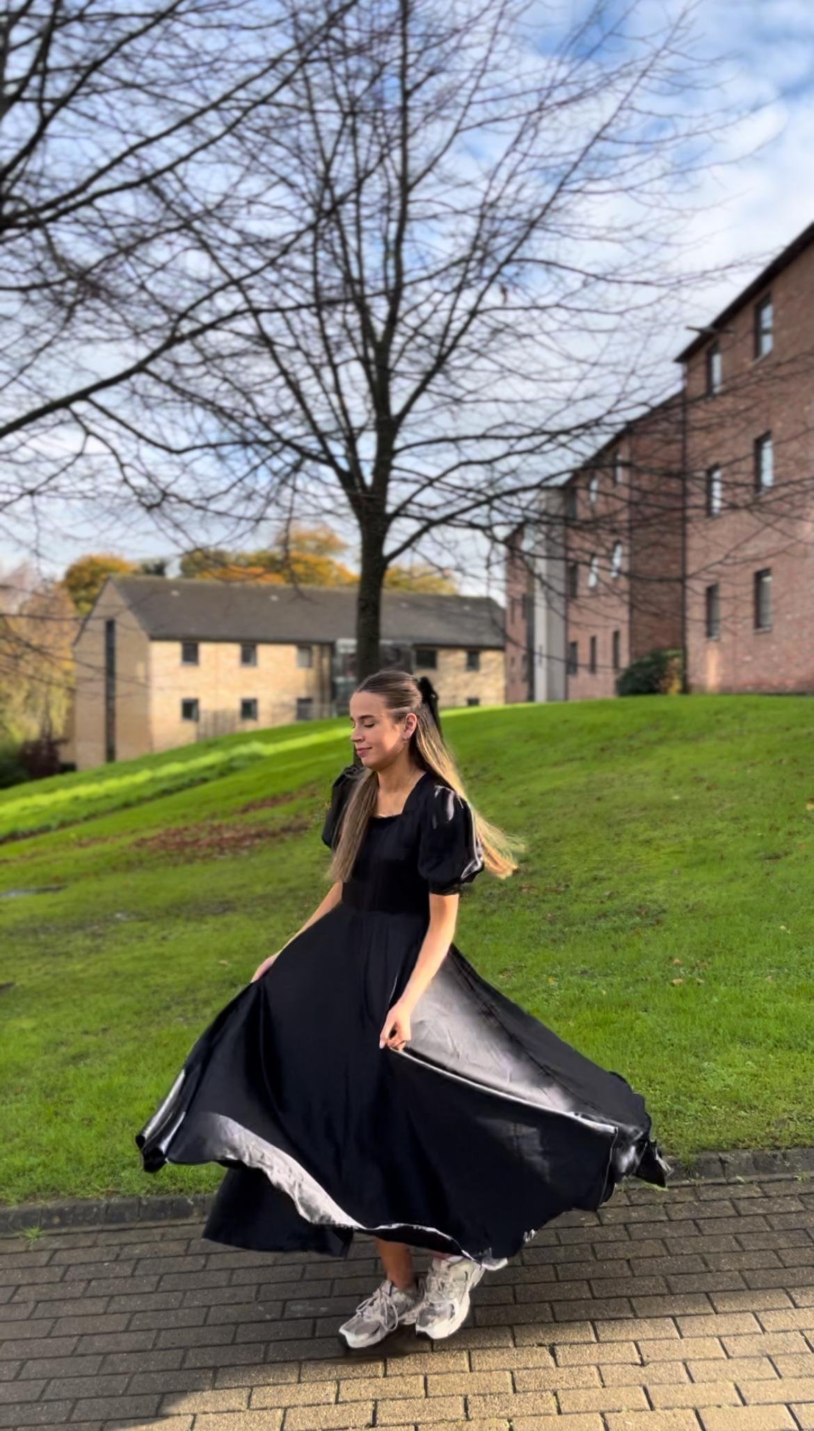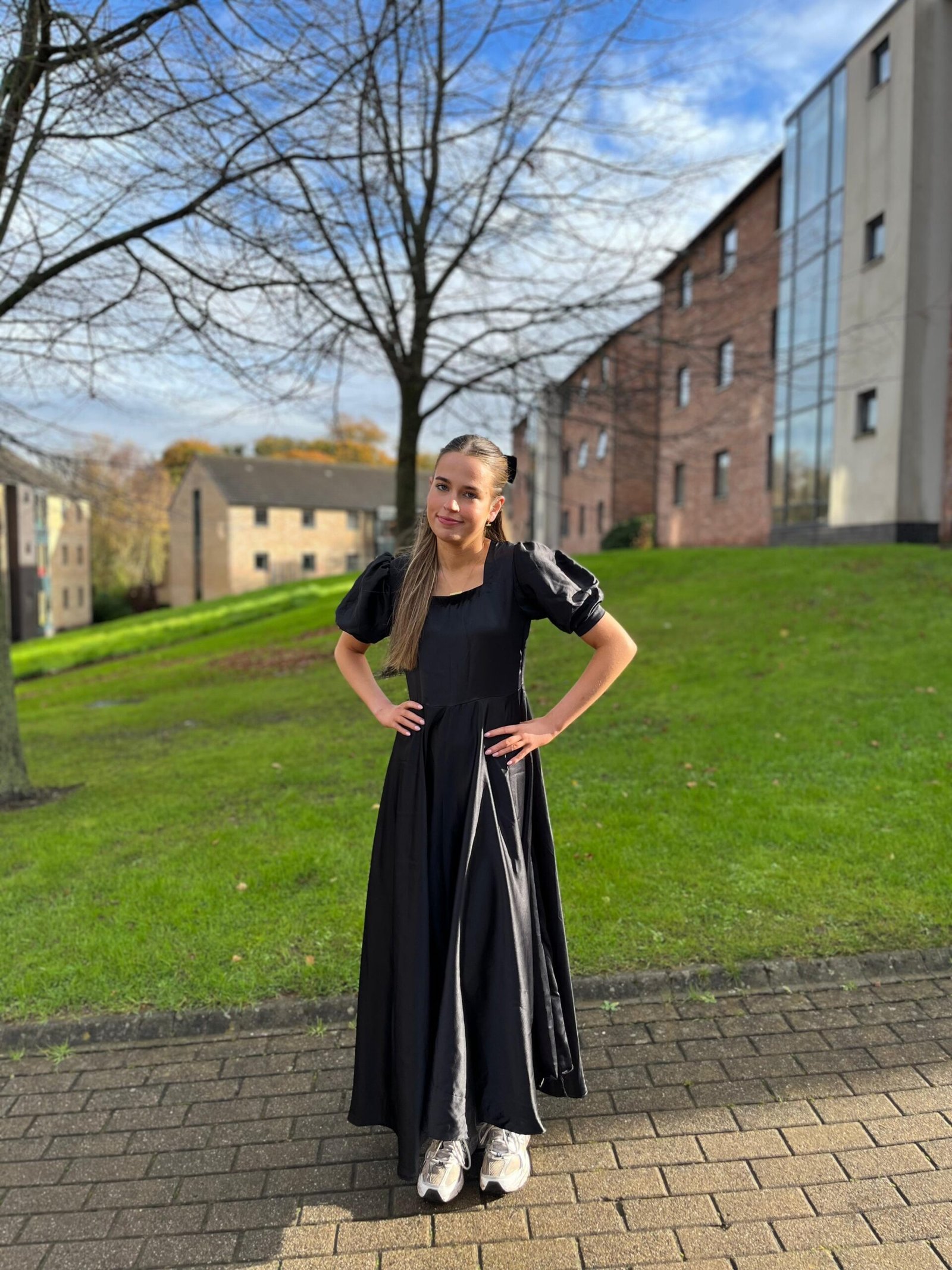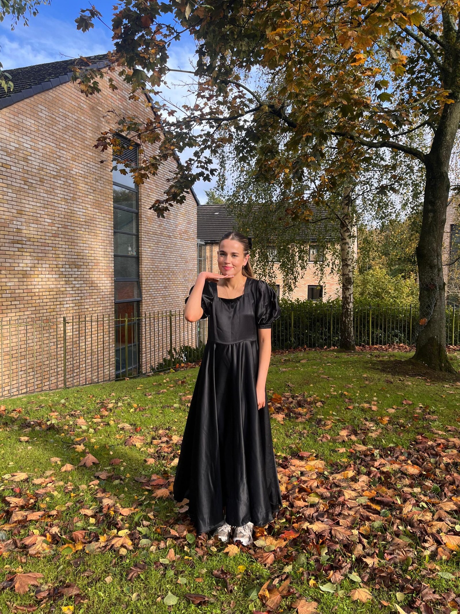 The Nova Dress balances structure and softness — a minimalist silhouette defined by its fitted bodice, gentle puff sleeves, and fluid skirt.